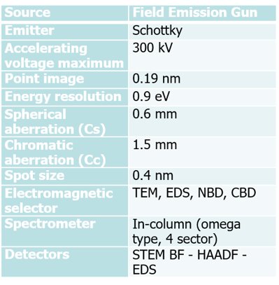 - Thermal Field Emission Gun (FEG), stability > 0.2 %/h